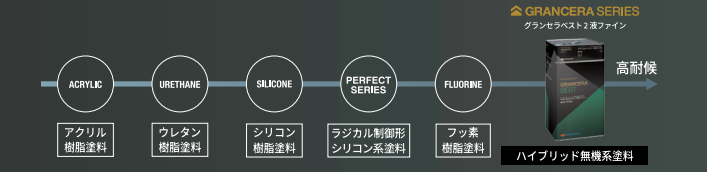 グランセラベスト2液ファインは【ハイブリッド無機系塗料】に分類されます。