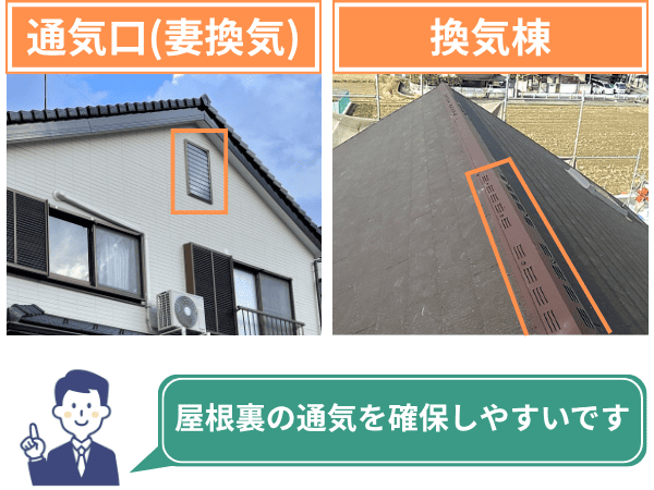 屋根裏の換気を取りやすく、夏場でも熱がこもりにくい構造です。