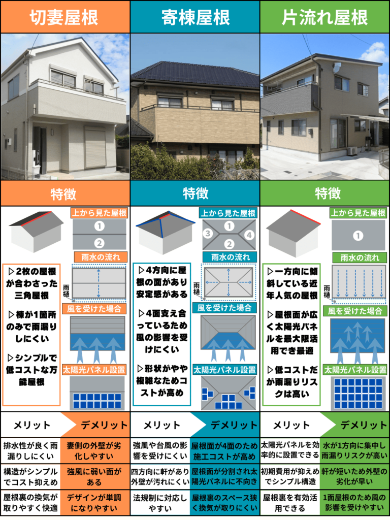 【パッと見てわかる!】切妻・寄棟・片流れ屋根の違いと特徴を解説