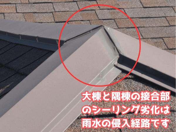 2.「棟」と「接合部」は雨漏りの急所と認識する