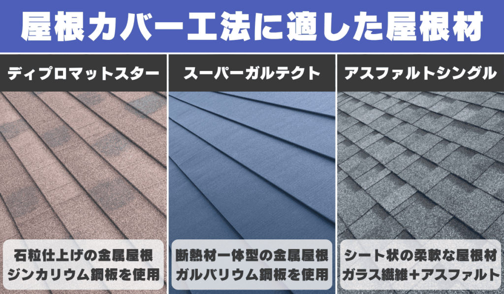 屋根カバー工法に適した屋根材は、主に「軽量で高耐久な屋根材」が中心です。