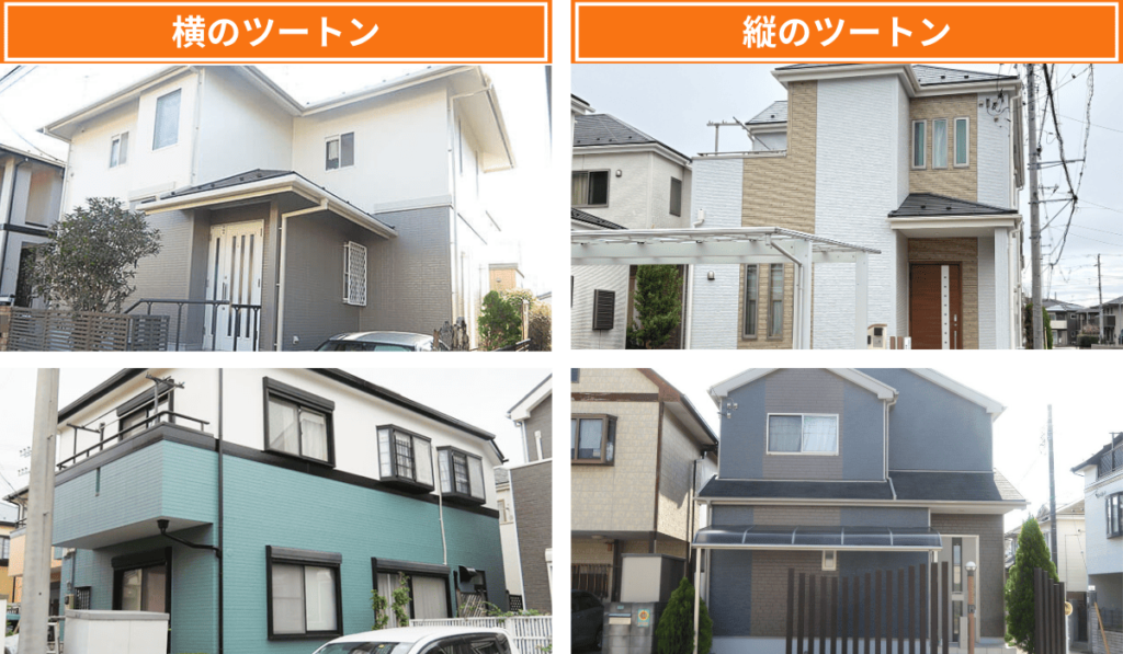 縦のツートン: 縦にラインを入れるように色を変えると、スタイリッシュで都会的な、高さのある印象を与えます。
