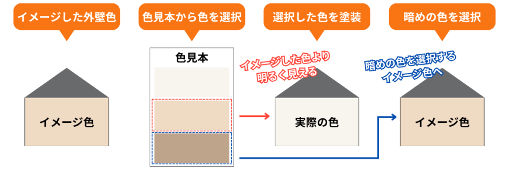 外壁塗装の色選びで最も重要な知識が面積効果です。