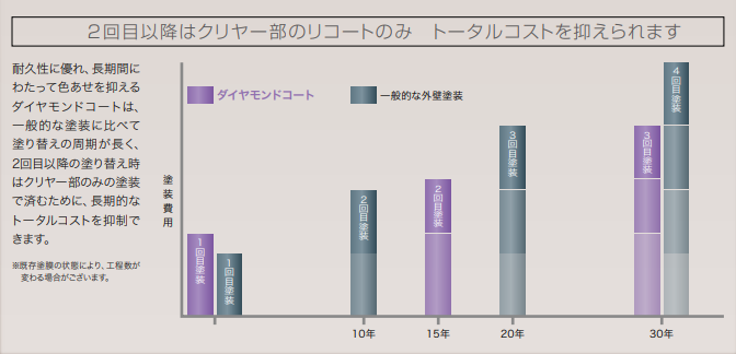 - ダイヤモンドコート2回目以降はリコートのみでコスト削減