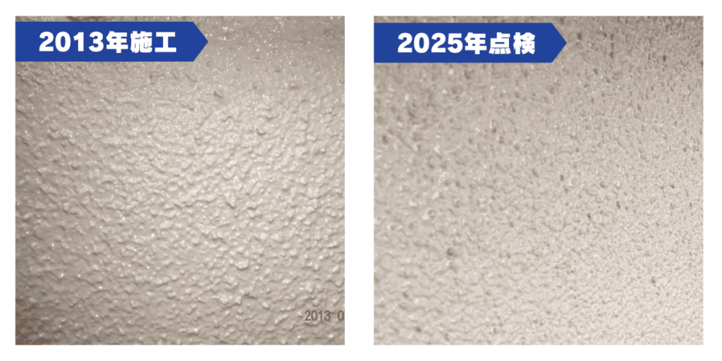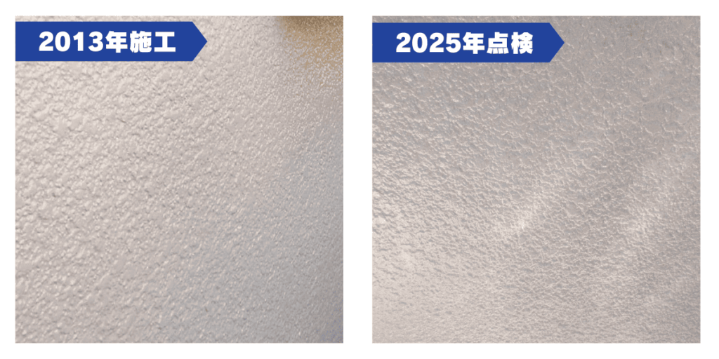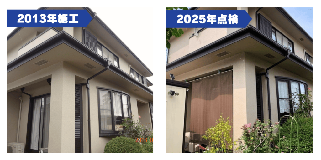 S様邸は2013年にダイヤモンドコートを施工され、12年経過しましたが、上記画像のように色あせなどの劣化は見られずキレイな状態でした。