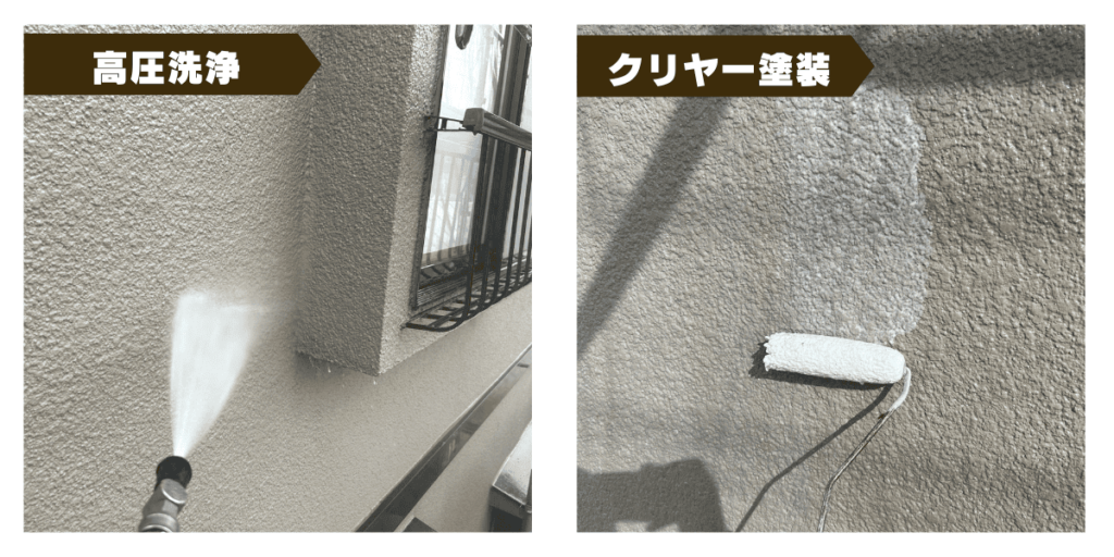 したがって、クリヤ塗装は「高品質な専用の透明塗料を、劣化の少ない外壁に2回塗ることで、工程を省略しつつ美観と耐久性を維持する」手法といえます。