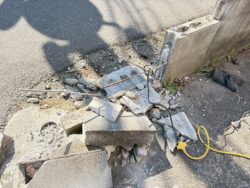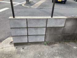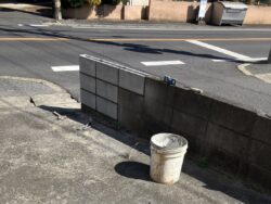 既存の基礎ブロック塀にひび割れ・グラつきがあり内部で破損し鉄筋が断裂していたため、グラつき箇所のブロックを撤去しました。