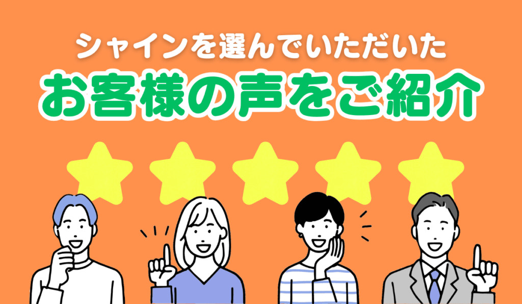 シャインでは、そんなお客様の疑問や不安に寄り添えるように、具体的で丁寧な説明・対応を心掛けております。