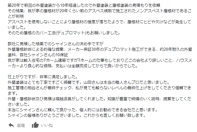 柏市 HMより良心的で高品質!「屋根の不安を解消し、新築以上の輝きに」プロが揃うシャインに頼んで正解でした