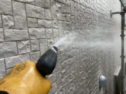 洗浄工程は、必要に応じて薬剤等も使用しながら約1日かけて行われます。経年によりこびりついた汚れをしっかりと除去していくことが、塗料の密着に繋がるからです。