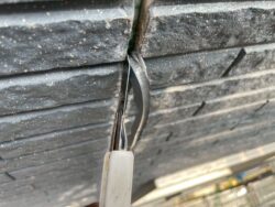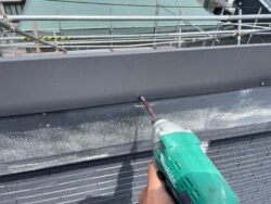 釘頭のシーリングを行うことで、釘穴の隙間からの雨水の侵入を防ぎます。シャインではこの釘頭のシーリングを標準施工としています。