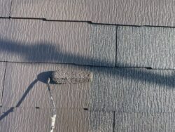 スレート屋根は表面全体に苔やカビも成長している状態でしたので、しっかりと高圧洗浄にて苔・カビを除去した後、ナノルーフ15にて塗装メンテナンスを行いました。