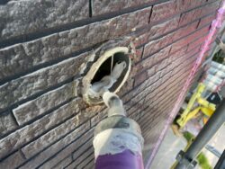 含水率(外壁内に含んでいる水分の割合)が適正範囲を超えていましたので、膨れのリスクを防止するために透湿性を重視した塗料にて塗装メンテナンスを行いました。