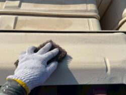 N様邸の外壁もボックスの端部など各所にサビが見受けられましたので、ケレン作業をしっかり行いました。