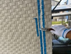 H様邸の外壁は窯業系サイディングでした。外壁コーナー部を中心に反りやズレが見られましたのでビス補強を行った後に、「ダイヤセラコートアクア」にて塗装を行いました。