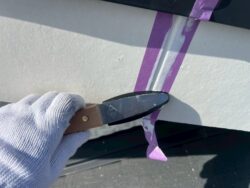 塗料で塞がってしまわないように、塗装後は塗膜を切って水の通り道を確保しております。