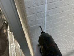外壁コーナー部を中心に反りやズレが見られましたのでビス補強を行いました。