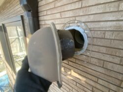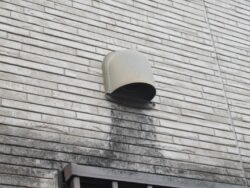 排気口カバーを取り外し、点検を行い内部をシーリングにて固定を行いました。