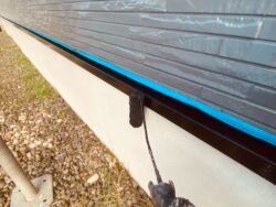 外壁に大きな反りやズレが見られたため、ビスの増し打ち補強を行いビス頭に浸水しないようシーリング処理を行います。