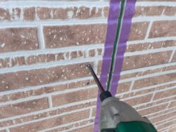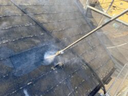 洗浄工程は、必要に応じて薬剤等も使用しながら約1日かけて行われます。経年によりこびりついた汚れをしっかりと除去していくことが、塗料の密着に繋がるからです。