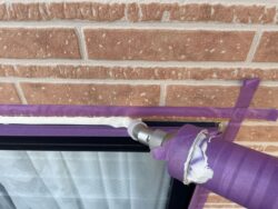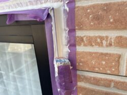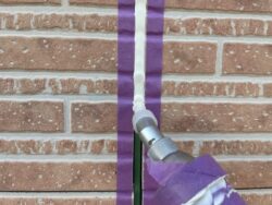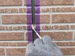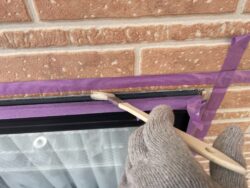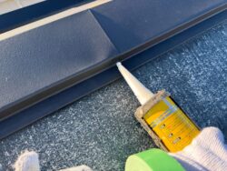 シーリング目地が経年劣化により欠落が見られたため、目地部分を打ち替え・外壁反り補強箇所の釘頭に浸水しないようシーリング処理を行います。