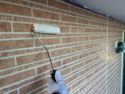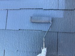 ファインパーフェクトベスト強化シーラーにて下塗りを行い、中塗り・上塗り塗料にはエシカルプロクールFを使用、お色はを104番を使用しました。